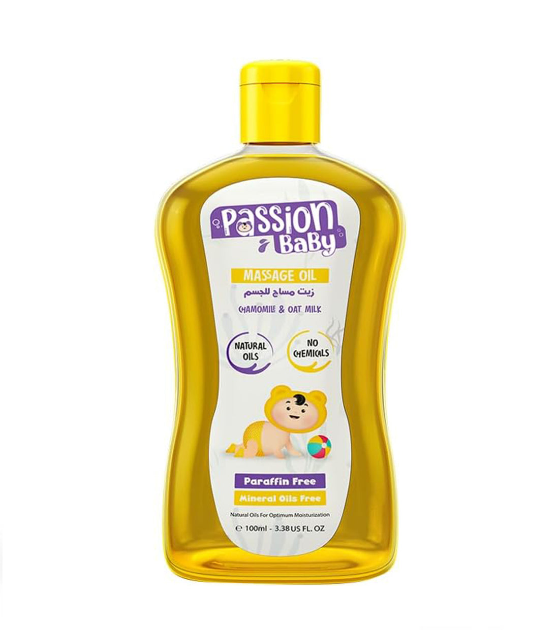 زيت مساج بيبي من باسشن يجمع بين الزيوت الطبيعية الأساسية وحليب الشوفان الذي يغذي ويرطب...