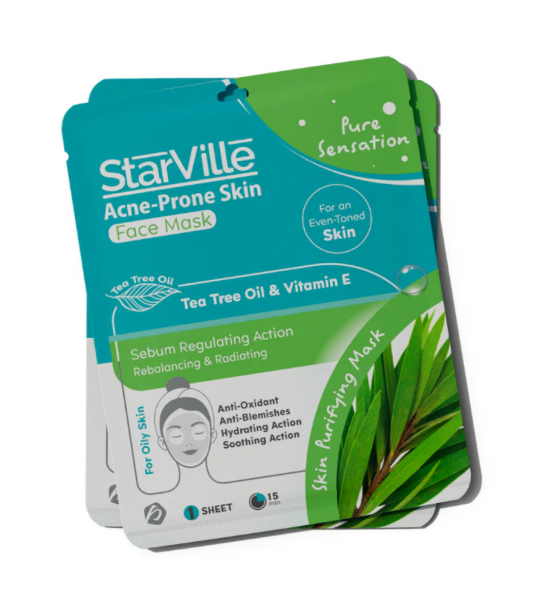 قناع الوجه ستارفيل للبشرة المعرضة لحب الشباب مدعم بزيت شجرة الشاي وفيتامين هـ، هذا القناع...