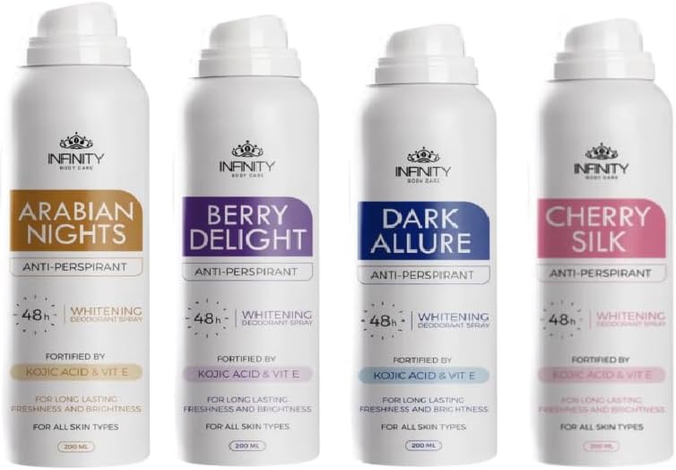 بخاخ مزيل العرق غني بحمض الكوجيك وفيتامين E، مما يساعد على تفتيح منطقة تحت الإبط الداكنة، تغذية البشرة، والتخلص من الروائح غير المرغوبة. يمنحك حماية فعّالة كمضاد للتعرق لمدة 48 ساعة ليبقيك جافًا، منتعشًا، وواثقًا.