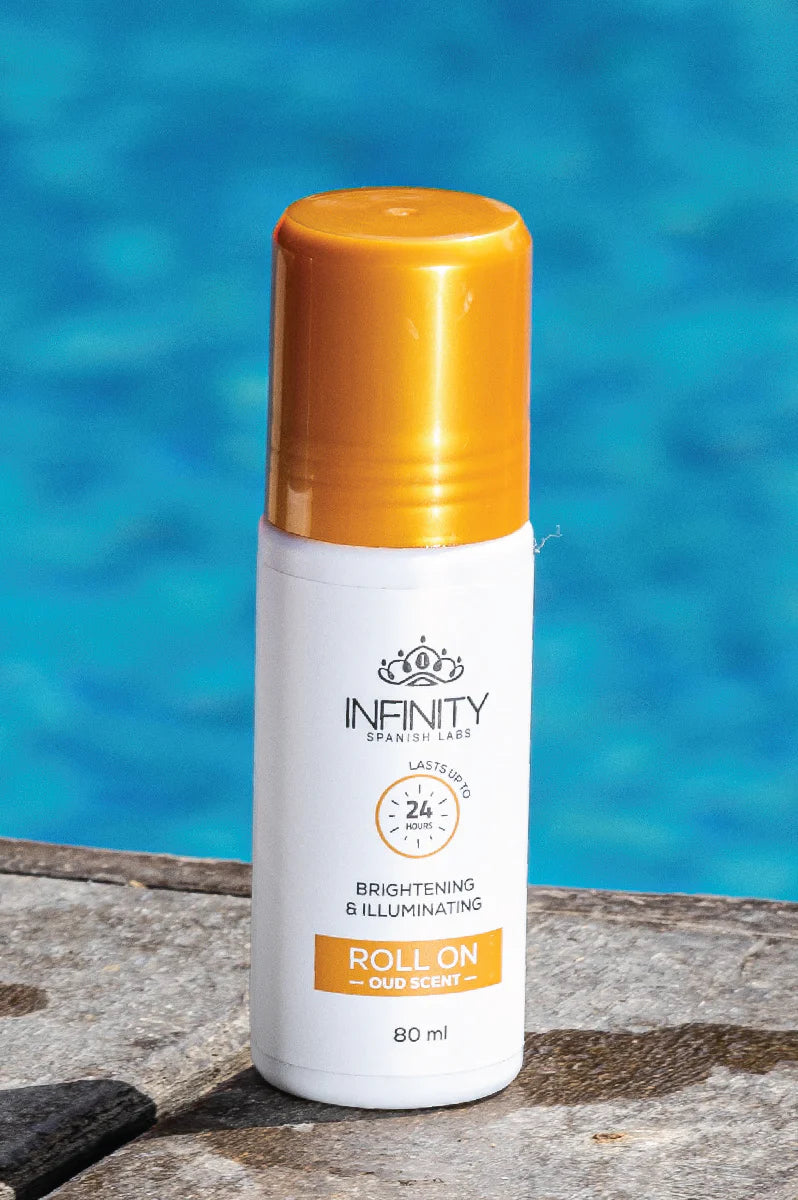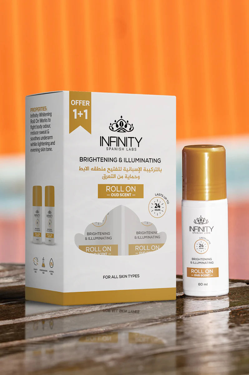 رول أون إنفينيتي للتفتيح يعمل على التخلص من البقع الداكنة وتوحيد لون البشرة مع توفير حماية تدوم 24 ساعة ضد رائحة الجسم وتقليل التعرق وتهدئة منطقة تحت الإبط