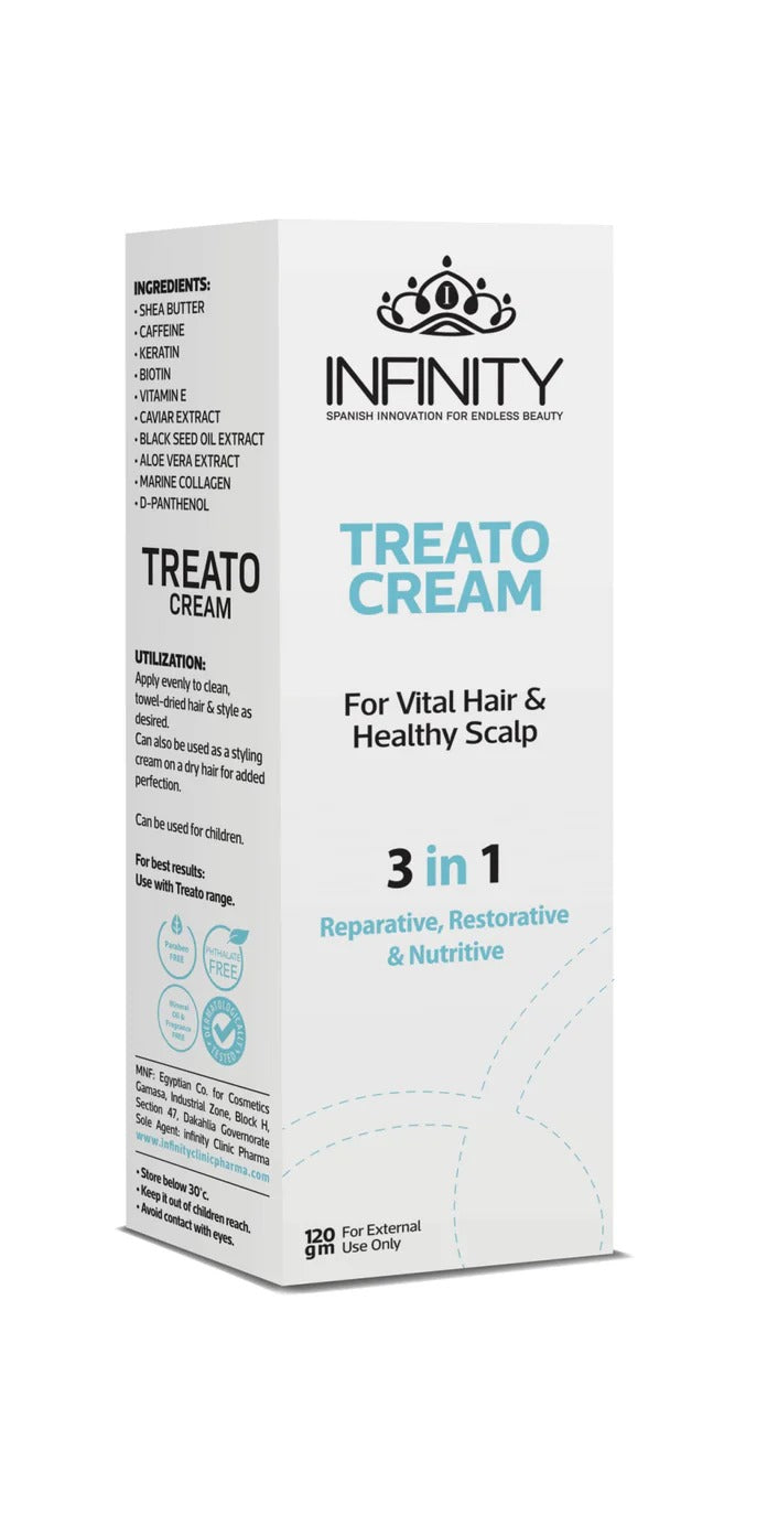 كريم تريتو هو حل لاستعادة الشعر التالف، يشكل طبقة واقية تحافظ على الترطيب للسماح للشعر بالنمو أطول ويعزز لمعانه ونعومته وسلاسة ملمسه، مع فك التشابك وتقوية الشعر المتقدم في العمر ضد التكسر