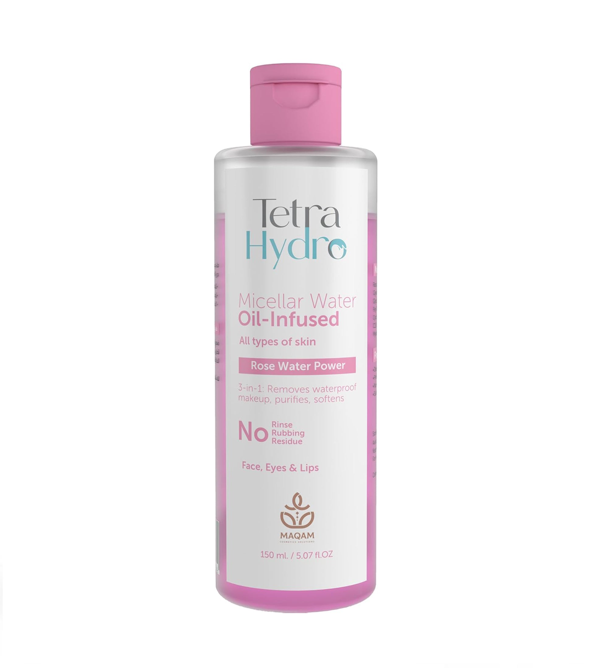 ماء ميسيلار بالزيوت والورد يزيل المكياج المقاوم والمقاوم للماء بلطف وسهولة في خطوة واحدة