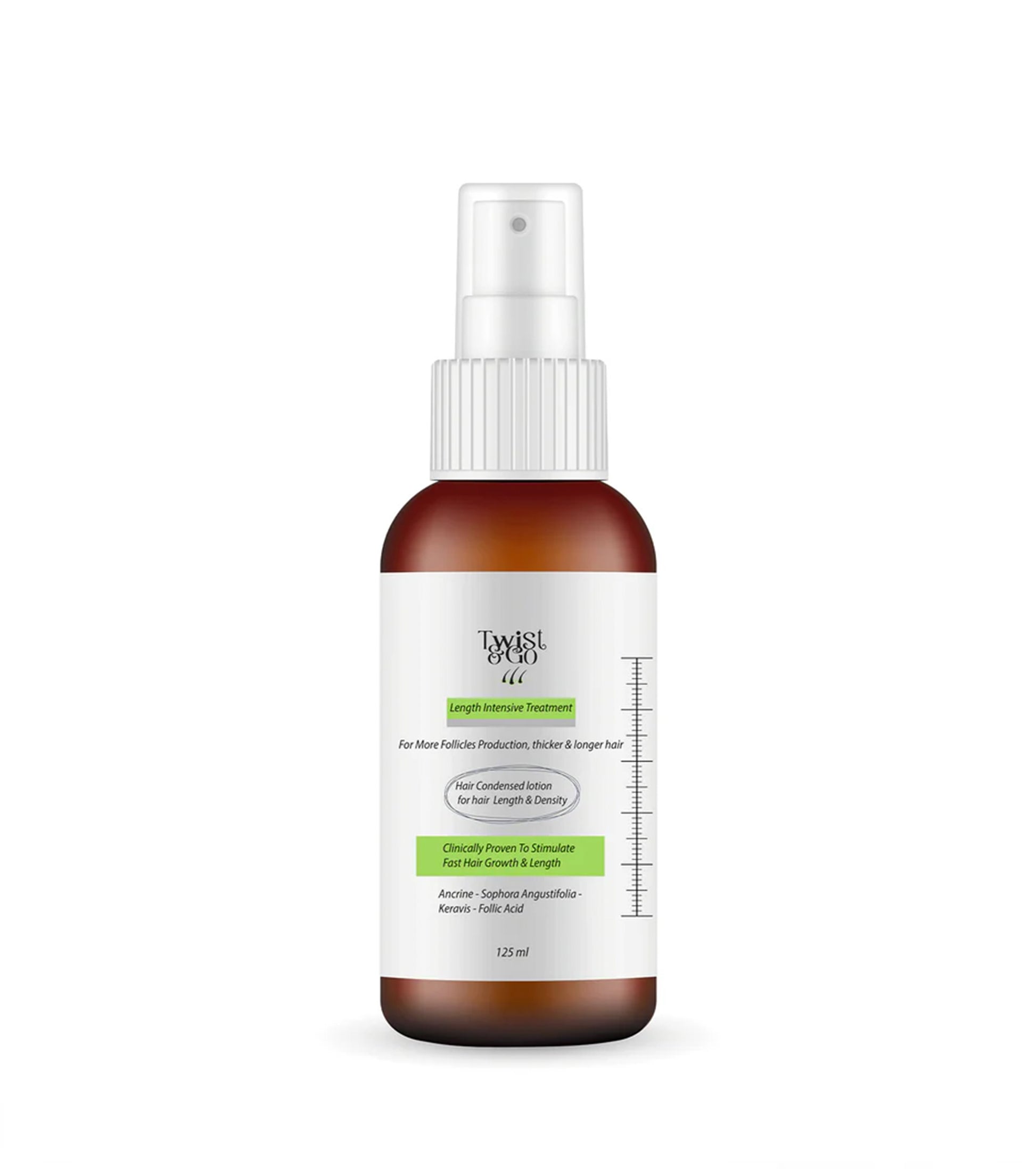 تركيبة علاجية تزيد من فترة نمو الشعر حيث تمنح الطاقة للبصيلات لتنمو أسرع مما يؤدي إلى الحصول على خصل أطول في وقت قصير يُستخدم ٨ إلى ١٠ رذاذات على المناطق المختارة ليلاً قبل النوم لمدة ٣٠ دقيقة مع تدليك فروة الرأس جيداً ثم تطبيق طريقة الانعكاسات لا يُغسل الشعر بعد استخدام هذا المنتج على فروة الرأس