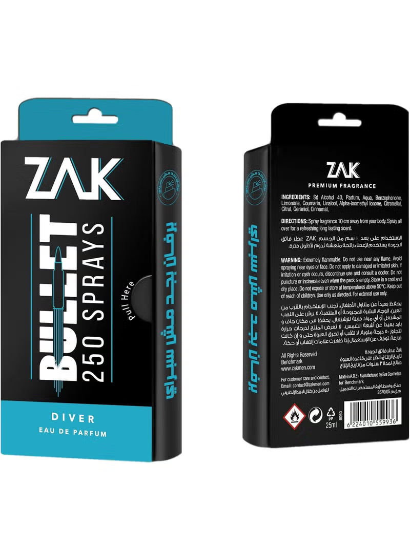 أنت تغوص ليس للهروب من الحياة بل لتمنع الحياة من الهروب منك! استمتع بحياتك لأقصى حد واحمل عطر الرصاصة من زااك في جيبك! غص أعمق مع زااك