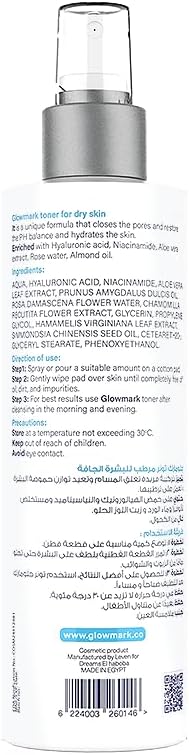 Glowmark hydrating Toner for dry skin is a unique formula that Closes the pores and restore the PH Balance and hydrates the skin.