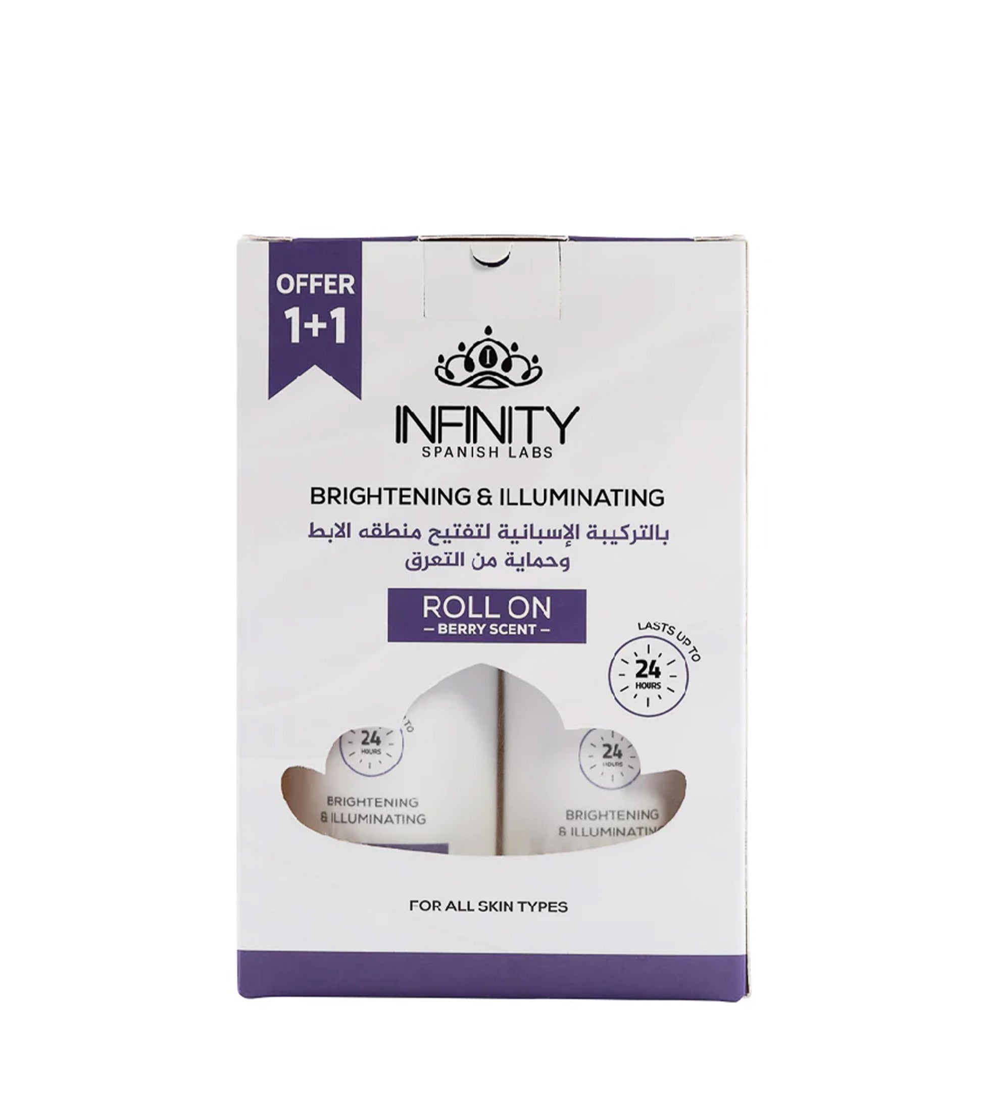 Infinity Whitening Roll On works on eliminating dark areas and evening skin tone while providing 24-hour protection against body odour, reduce sweat & soothes underarm.